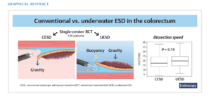論文のタイトルは 「Prospective randomized trial comparing conventional and underwater endoscopic submucosal dissection for superficial colorectal neoplasms」 です。
